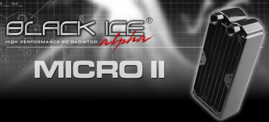 The Black Ice® Micro II levels up the performance of the most compact PC radiator, the Black Ice® Micro. Built around a dual 80mm fan form factor, the Black Ice® Micro II fills in the duty where dual 80mm fan performance and easy installation is a must in performance computer cases.