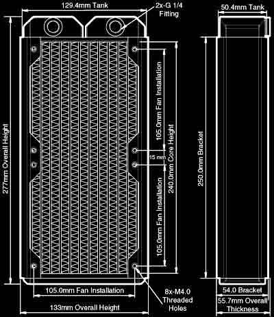 - High performance compact radiator compatible as an upgrade to the Black Ice® Xtreme II, Black Ice® GTX240 and most 2x120mm fan form factor radiators.