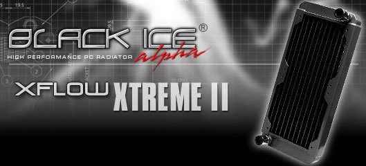 The Black Ice® Xtreme II XFlow takes Xtreme PC Radiator performance to a higher level. Based on the powerful Black Ice® Xtreme platform, the Xtreme II XFlow doubles performance with twice the surface area accomodating two 120mm fans and is now optimized for low flow cooling system configurations. (G 1/4″ fittings option shown above)