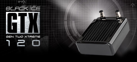The Black Ice® GTX120 brings true next generation PC Radiator technology to a higher level of performance. Using the new GTX platform, the GTX120 provides twice the liquid heat transfer surface area with a unique pre-cool/aftercool coolant flow configuration which increases heat transfer efficiency and internal system flow rates. The first effective dual core PC radiator. High performance and quiet operation no longer need to be a compromise.