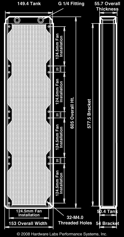 - First dual core computer radiator configured and optimized for quadruple 140mm fans.