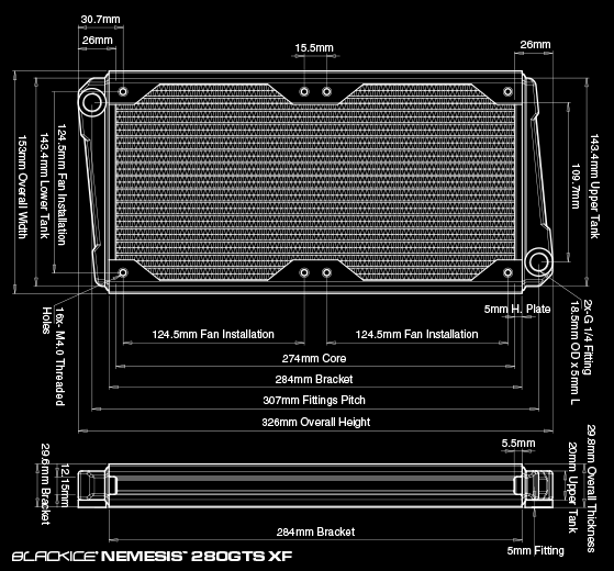 The Black Ice® Nemesis® 280GTS® XFlow scales performance by utilizing low-noise dual sub-800 rpm 140mm fans for even better performance with a reduced noise footprint. This provides casemod enthusiasts with a slim form factor dual fan radiator with the enhanced performance without the acoustic penalties. The 240GTS® XFlow utilizes a vectored cross-flow tank design to improve overall flow in systems utilizing impingement type waterblocks.
