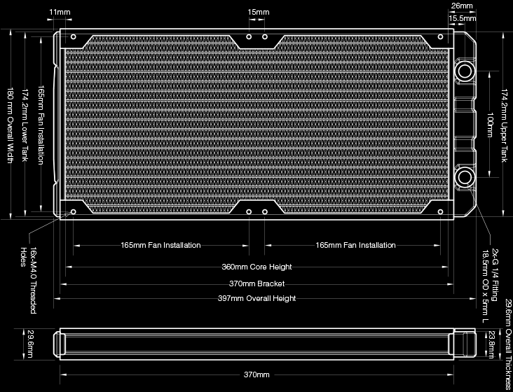 • 180mm x 2 fan slim form factor two-pass radiator.