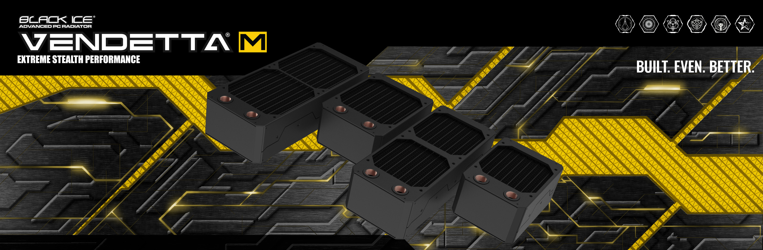 VENDETTA Micro Series BLACK ICE® VENDETTA® M80 HIGH PERFORMANCE, LOW NOISE, EXTREME STEALTH 1 x 80MM FANS. BLACK ICE® VENDETTA® M92 HIGH PERFORMANCE, LOW NOISE, EXTREME STEALTH FOR 1 x 92MM FANS. BLACK ICE® VENDETTA® M160 HIGH PERFORMANCE, LOW NOISE, EXTREME STEALTH FOR 2 x 80MM FANS. BLACK ICE® VENDETTA® M184 HIGH PERFORMANCE, LOW NOISE, EXTREME STEALTH FOR 2 x 92MM FANS.