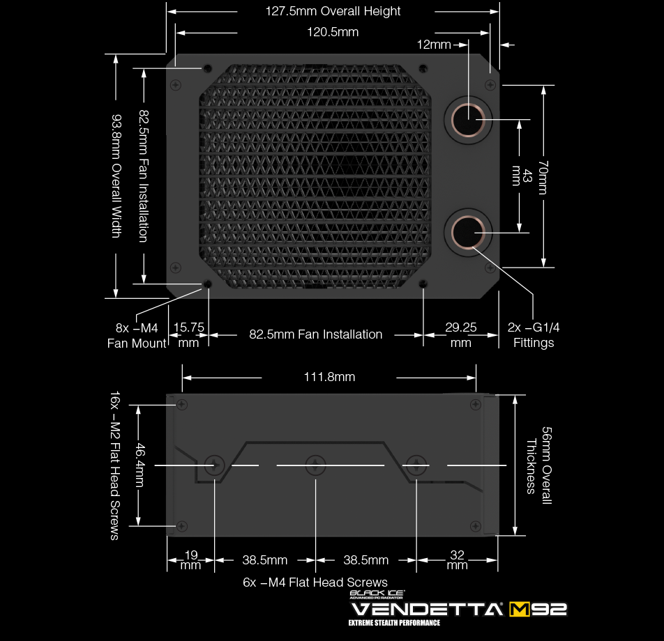 • Compatible with Black Ice® Xtreme M92, Black Ice® GTX M92, GTX NEMESIS® GTX M92 radiators