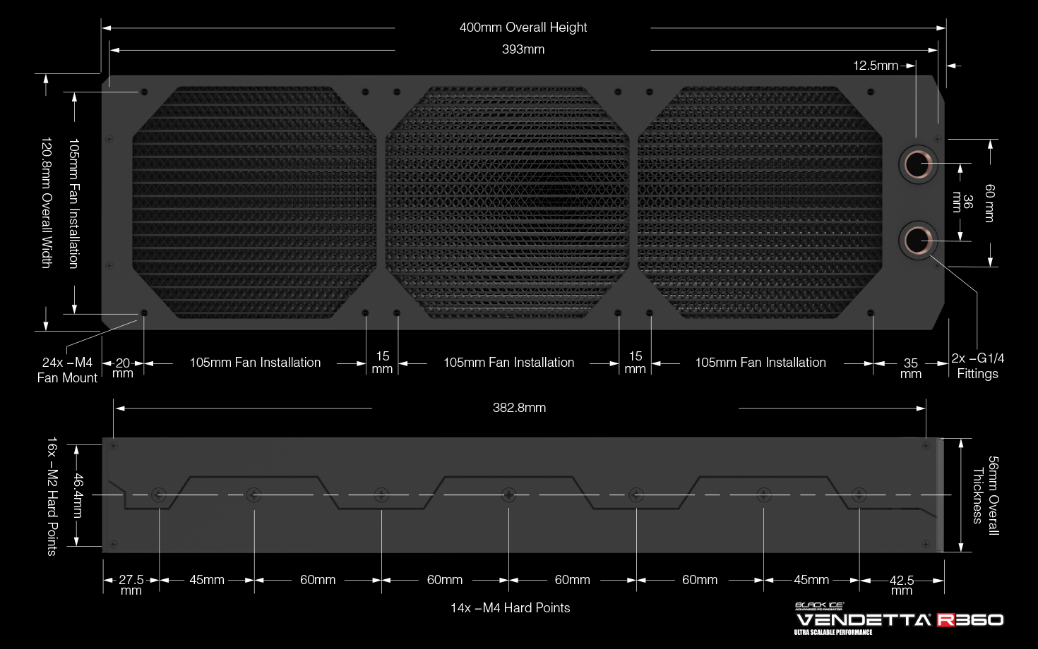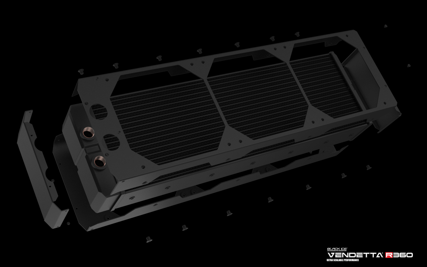 ULTRA-HIGH PERFORMANCE LOW NOISE, SUPER SCALABLE RADIATOR FOR 3 x 120MM FANS.